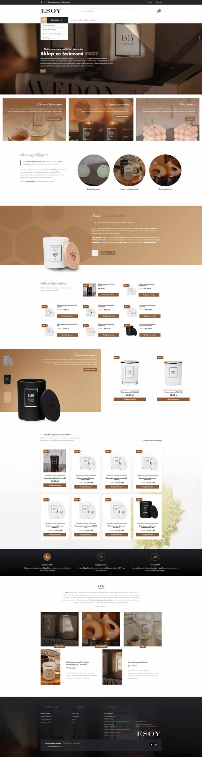 Głównym profilem działalności firmy Esoy z siedzibą w Rzeszowie jest sprzedaż ekskluzywnych świec ozdobnych i zapachowych. Świece marki Esoy są produkowane ekologicznie i ręcznie tworzone.
