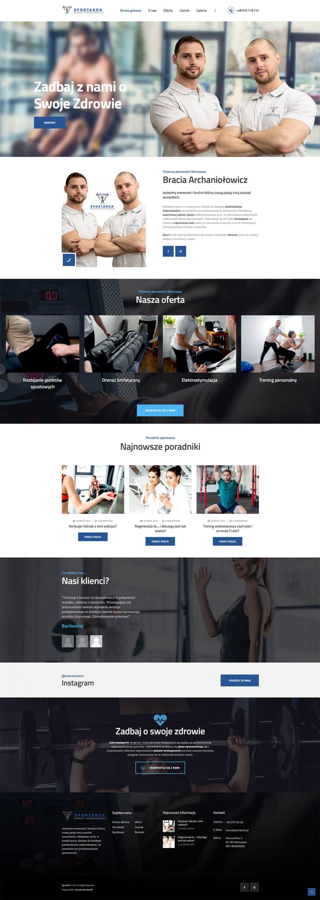 SportArch z siedzibą w Warszawie to firma prowadzona przez dwóch braci – trenerów personalnych, których głównym filarem działalności jest dbałość o sylwetkę i zdrowie swoich podopiecznych.